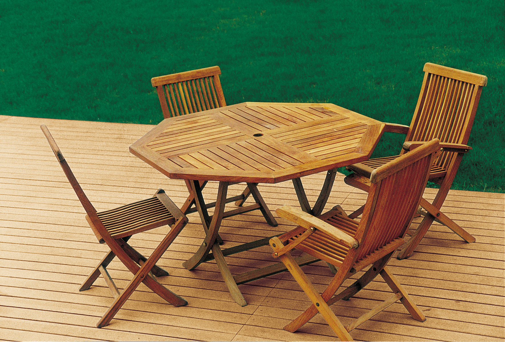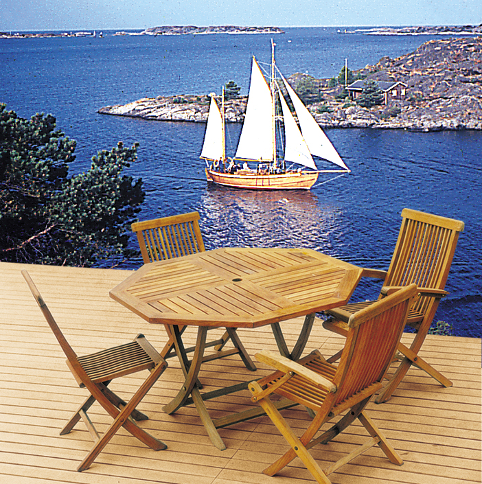 Teakmöbel auf Holzterrasse
